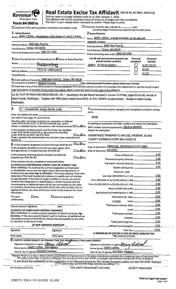 | Mailing Address: | 1591 S POPLAR LN CAMANO ISLAND, WA 98282 | % Ownership: | 100.0000000000% |
