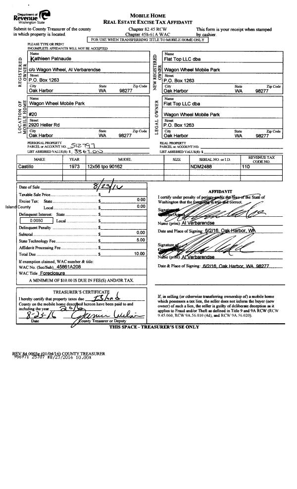 | Mailing Address: | ROGER KINNAMAN 1406 GRAHAM DR CAMANO ISLAND, WA 98282 | % Ownership: | 100.0000000000% |