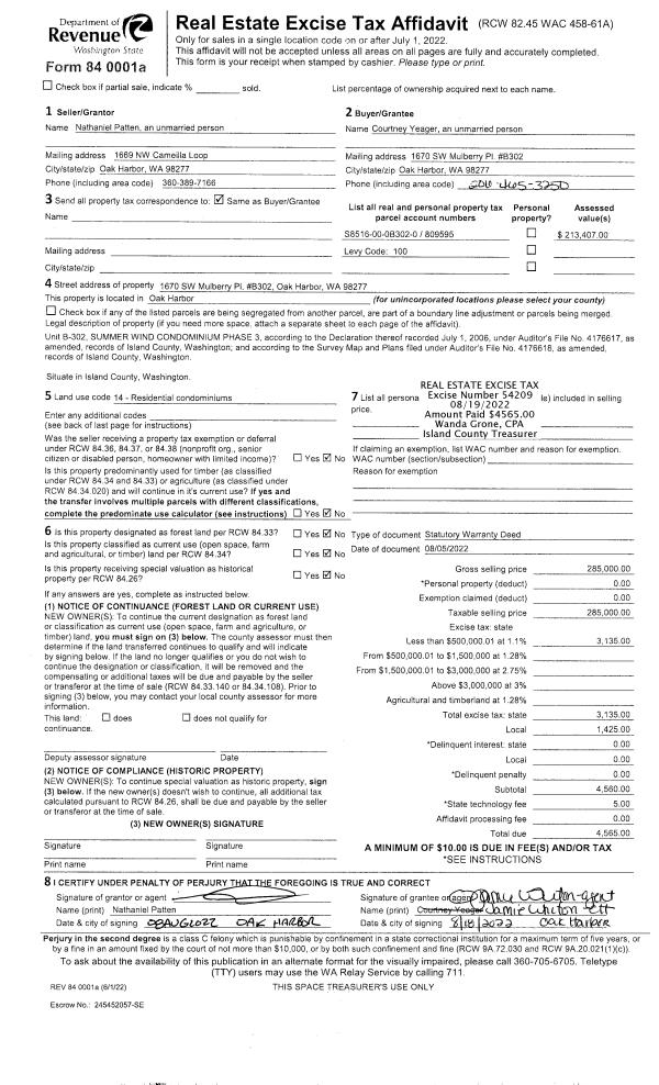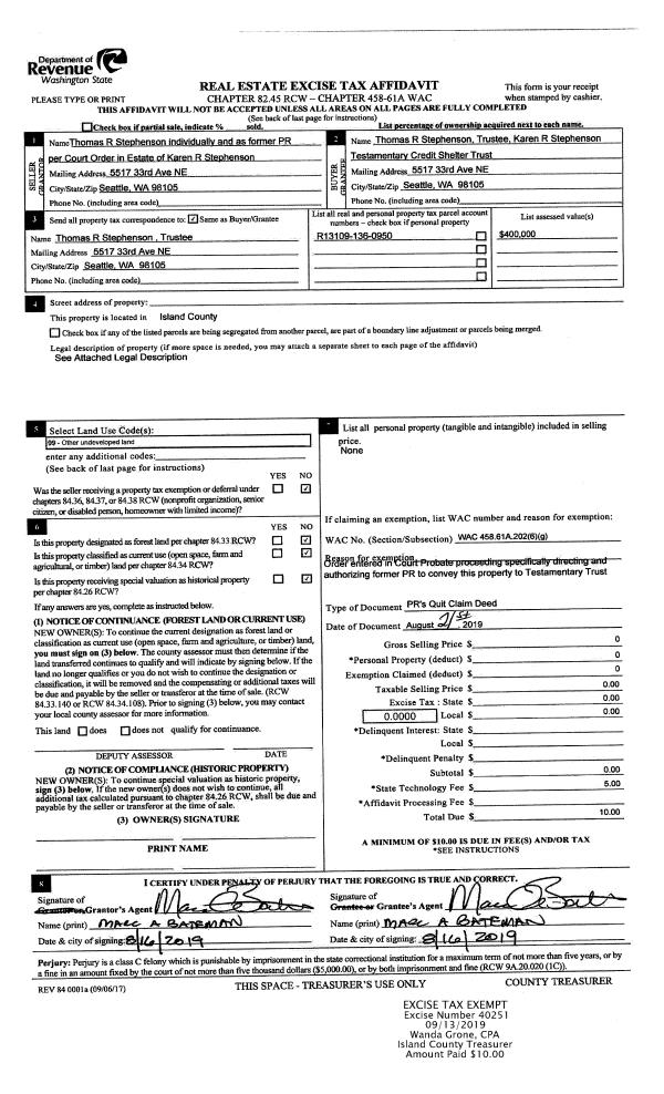 | Mailing Address: | JOYCE M MCNETT 1460 GRAHAM DR CAMANO ISLAND, WA 98282 | % Ownership: | 100.0000000000% |