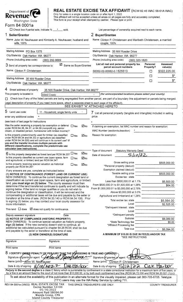 | Mailing Address: | 1449 RIDGE DR CAMANO ISLAND, WA 98282-7615 | % Ownership: | 100.0000000000% |