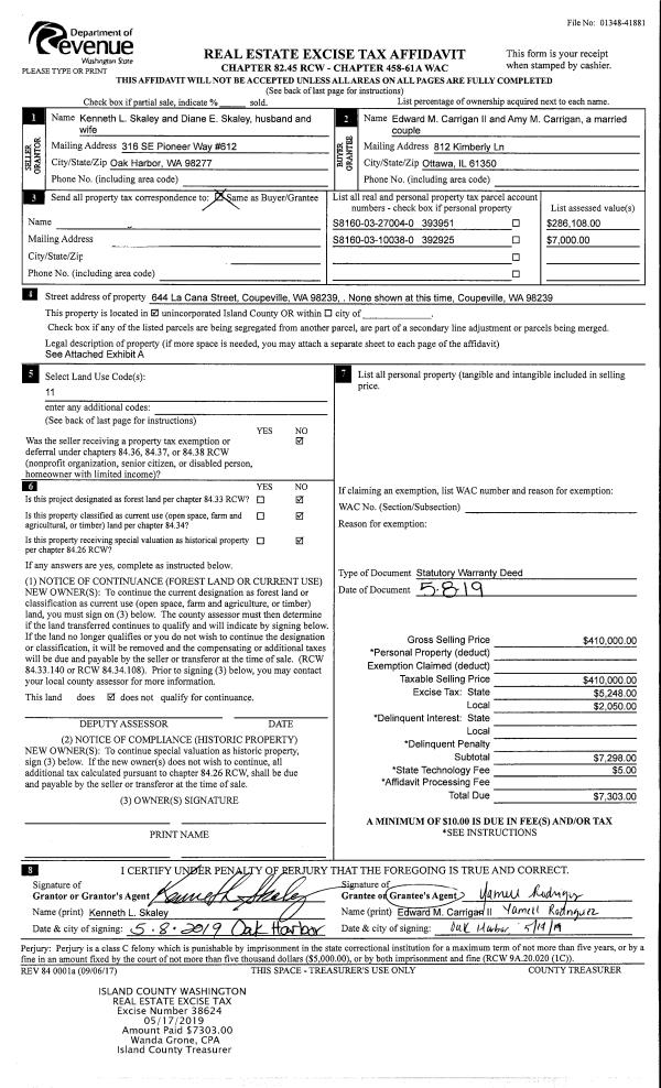 | 2 | 05/03/2019 | WD | Warranty Deed | KLEMPEL CONSTRUCTION INC | SLECHTA, RONALD | | | $41,000.00 | 38581 | 4463703 |