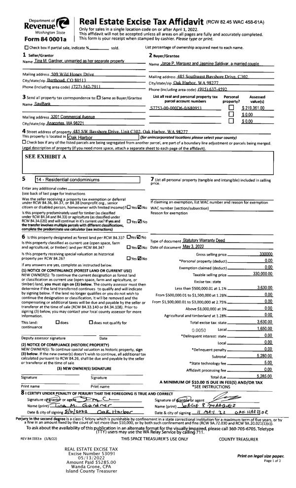 | Mailing Address: | 1466 RIDGE DR CAMANO ISLAND, WA 98282-7615 | % Ownership: | 100.0000000000% |