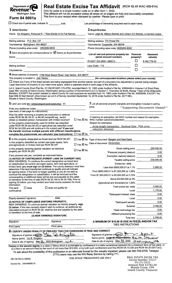 | Mailing Address: | 1851 LAKE DR CAMANO ISLAND, WA 98282 | % Ownership: | 100.0000000000% |