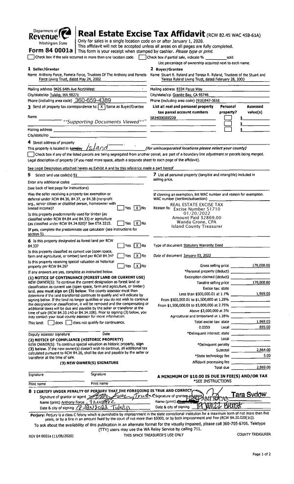 | Mailing Address: | 1839 LAKE DR CAMANO ISLAND, WA 98282 | % Ownership: | 100.0000000000% |
