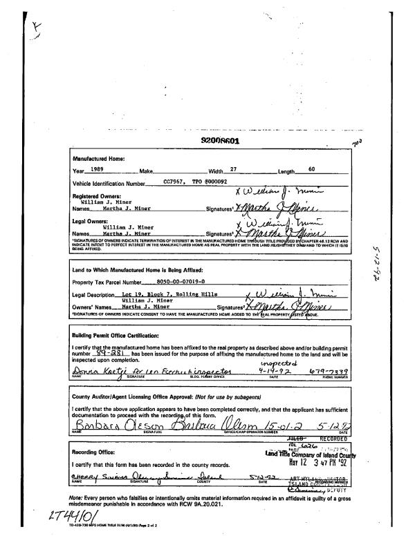 | Mailing Address: | JANA JOLENE HUGHES 4460 LYON RD OAK HARBOR, WA 98277 | % Ownership: | 100.0000000000% |