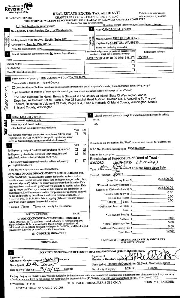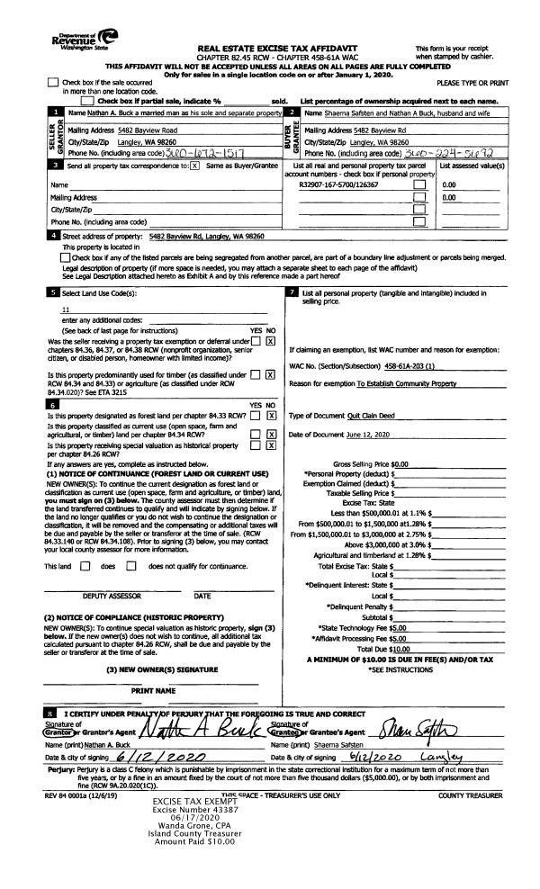 | Mailing Address: | 1672 ASPEN DR CAMANO ISLAND, WA 98282 | % Ownership: | 100.0000000000% |