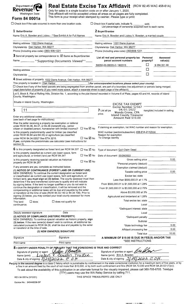 | Mailing Address: | 24630 MILLER RD STANWOOD, WA 98292-9325 | % Ownership: | 100.0000000000% |