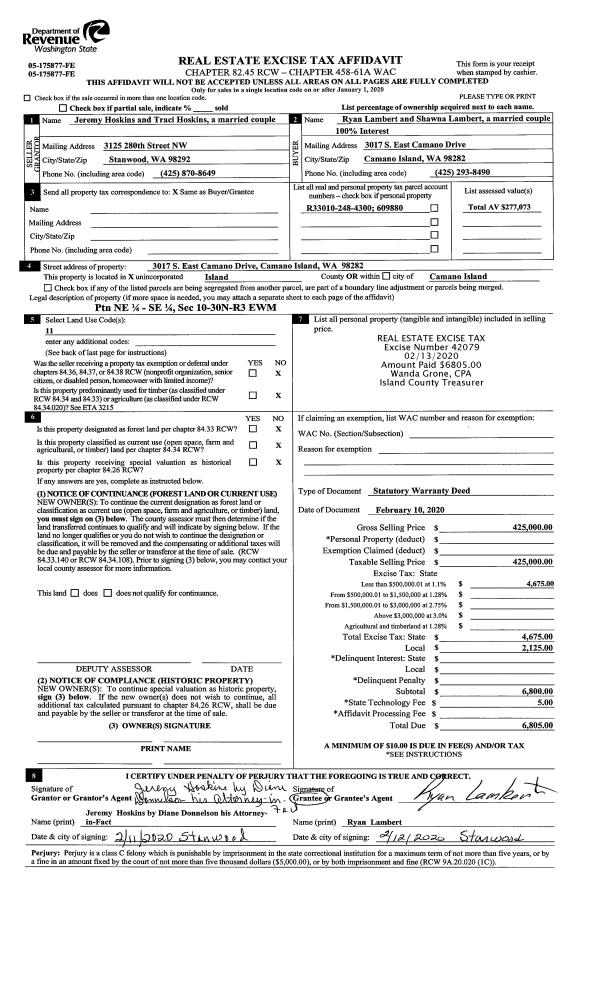 | Mailing Address: | 1676 VINE MAPLE LN CAMANO ISLAND, WA 98282 | % Ownership: | 100.0000000000% |