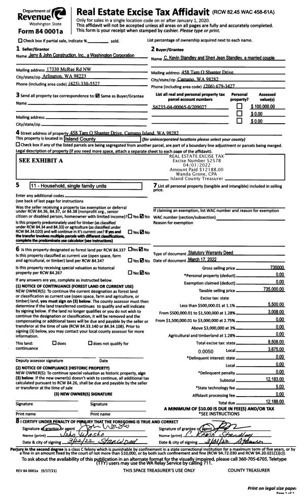 | Mailing Address: | 1666 VINE MAPLE LN CAMANO ISLAND, WA 98282 | % Ownership: | 100.0000000000% |