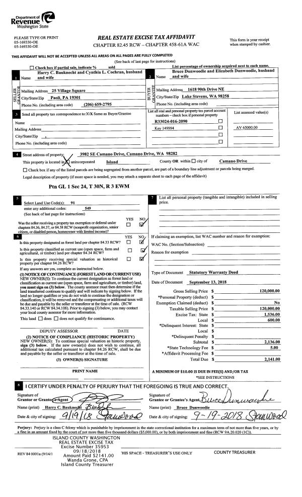 | Mailing Address: | 1680 LAKE DR CAMANO ISLAND, WA 98282 | % Ownership: | 100.0000000000% |