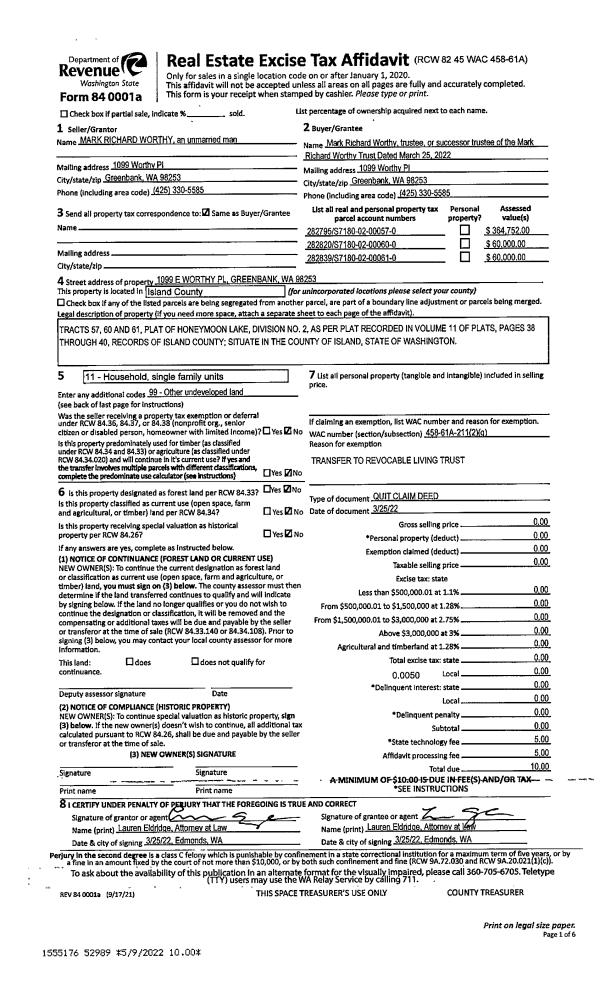 | Mailing Address: | 1671 HEMLOCK DR CAMANO ISLAND, WA 98282-7629 | % Ownership: | 100.0000000000% |