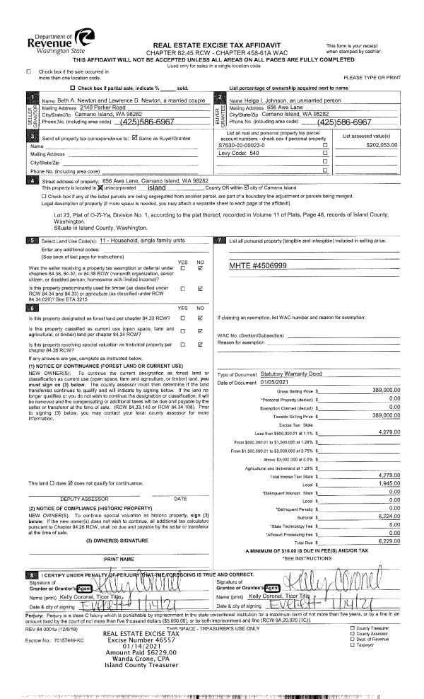 | Mailing Address: | KIMBERLY KOCAR COWLES OBAN 1676 SPRUCE RIDGE DR CAMANO ISLAND, WA 98282 | % Ownership: | 100.0000000000% |