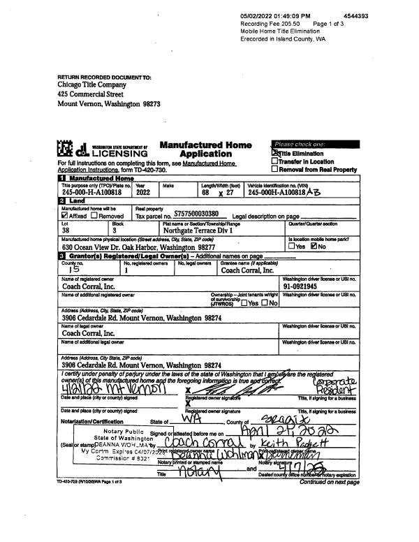 | Mailing Address: | 1620 POPLAR LN CAMANO ISLAND, WA 98282 | % Ownership: | 100.0000000000% |