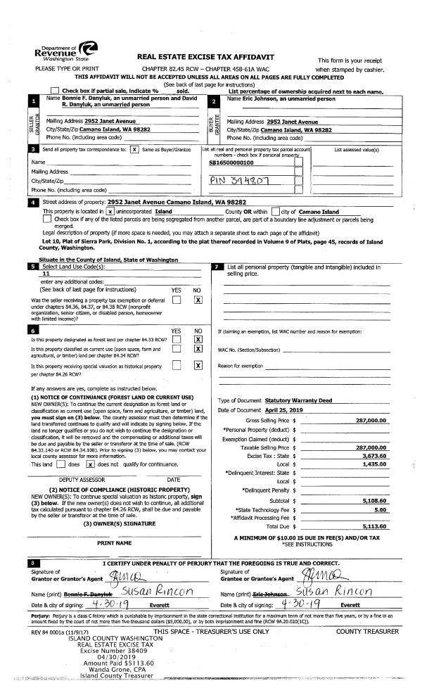 | Mailing Address: | 1649 POPLAR LN CAMANO ISLAND, WA 98282 | % Ownership: | 100.0000000000% |
