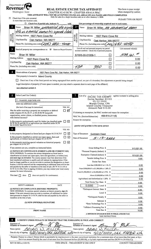 | Mailing Address: | HERBERT A BOHLANDER KAREN A BOHLANDER 1612 LAKE DR CAMANO ISLAND, WA 98282 | % Ownership: | 100.0000000000% |