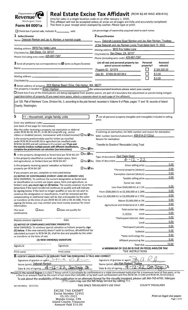 | Mailing Address: | 1689 HEMLOCK DR CAMANO ISLAND, WA 98282-7629 | % Ownership: | 100.0000000000% |