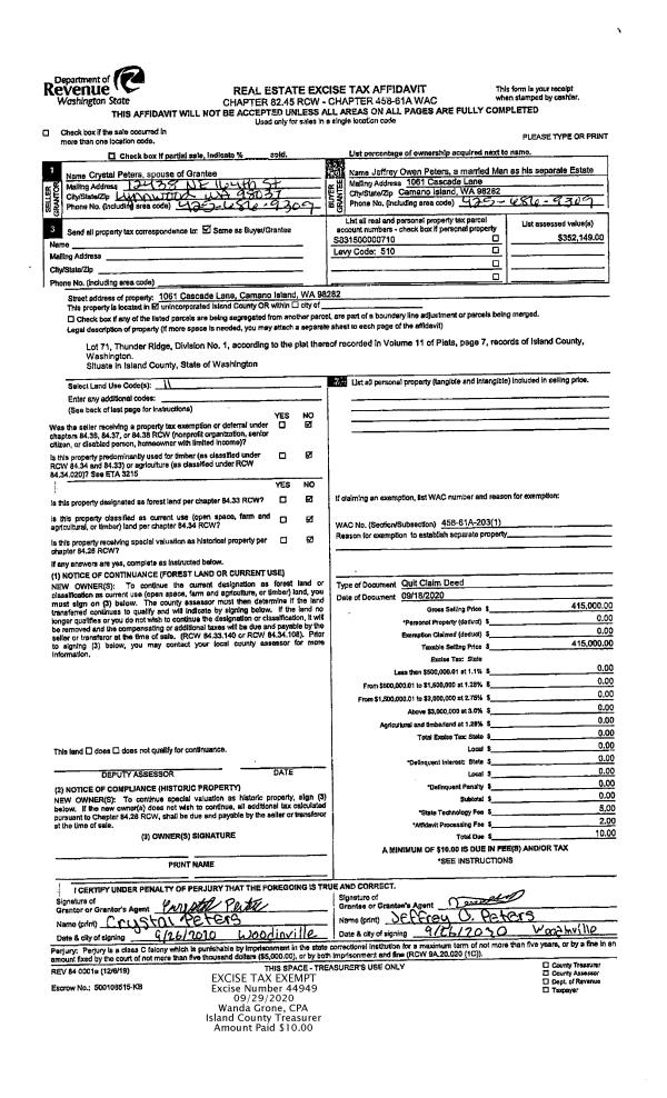 | Mailing Address: | 7380 MAXWELTON RD CLINTON, WA 98236 | % Ownership: | 100.0000000000% |