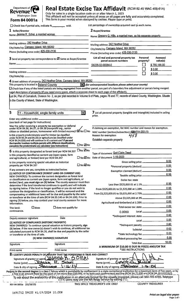 | Mailing Address: | CAROL GARNER-COX 315 SEASCAPE DR CAMANO ISLAND, WA 98282 | % Ownership: | 100.0000000000% |