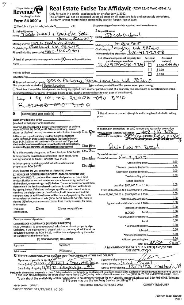 | Mailing Address: | LING D KOSELKE 332 N SUNSET DR CAMANO ISLAND, WA 98282-8685 | % Ownership: | 100.0000000000% |