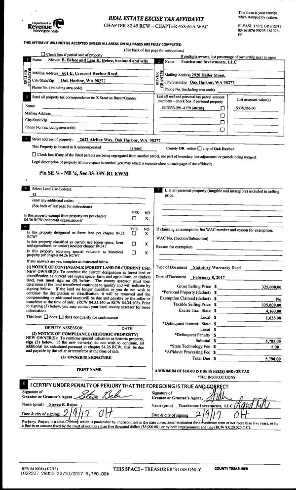 | Mailing Address: | TRACI A MATTHEW 145 BEACHWOOD AVE CAMANO ISLAND, WA 98282 | % Ownership: | 100.0000000000% |