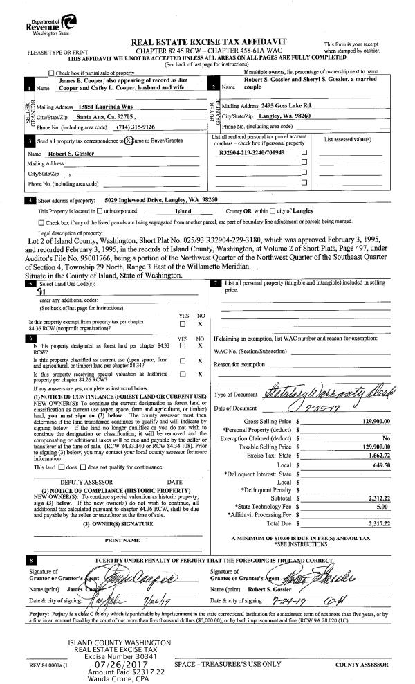 | Mailing Address: | NANCY E UHLMANSIEK 185 N SUNSET DR CAMANO ISLAND, WA 98282 | % Ownership: | 100.0000000000% |