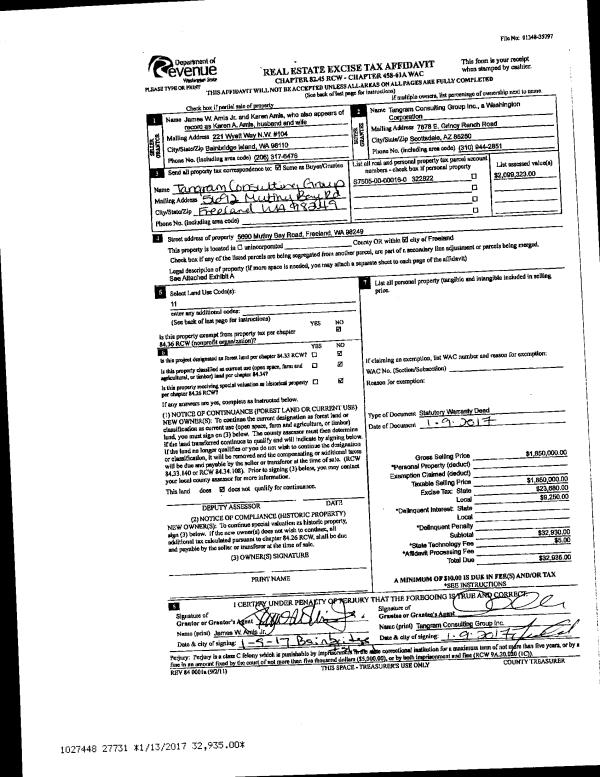 | Mailing Address: | TAMMIE V STEELE 4590 WOODLANDS CIRCLE OAK HARBOR, WA 98277 | % Ownership: | 100.0000000000% |