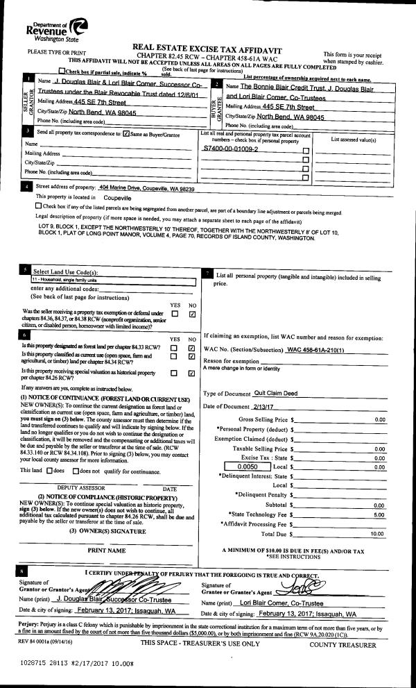 | Mailing Address: | SHAWNA WARFIELD 298 N SUNSET DR CAMANO ISLAND, WA 98282 | % Ownership: | 100.0000000000% |