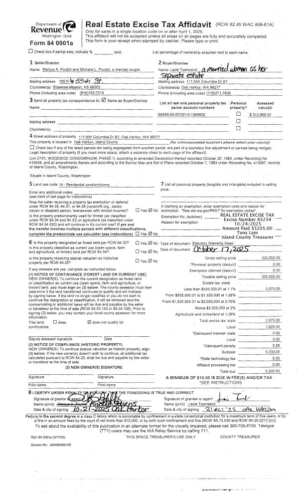 | Mailing Address: | INGRID U SCHWAB 232 N SUNSET DR CAMANO ISLAND, WA 98282 | % Ownership: | 100.0000000000% |