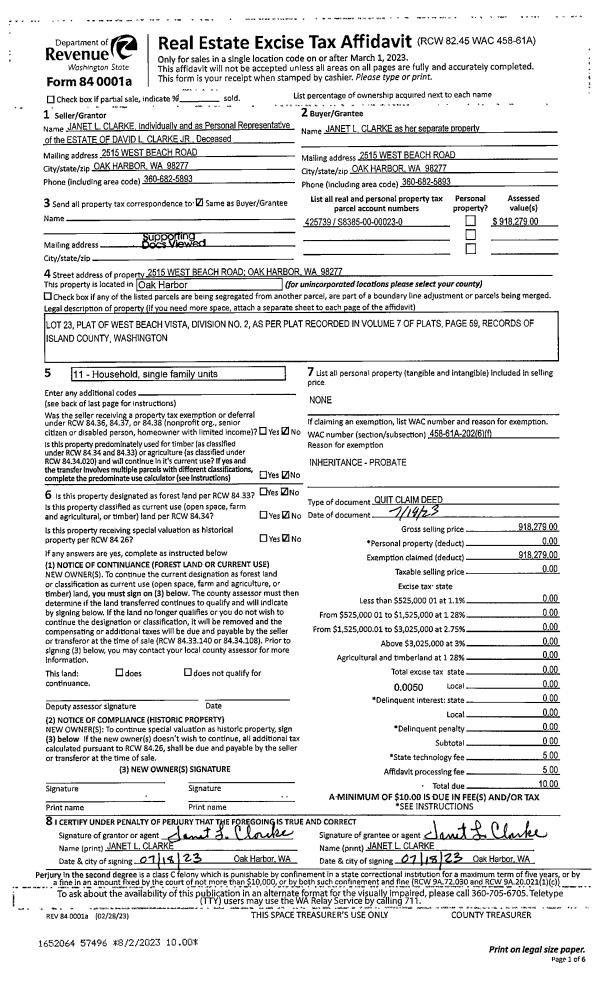 | Mailing Address: | 186 N SUNSET DR CAMANO ISLAND, WA 98282 | % Ownership: | 100.0000000000% |