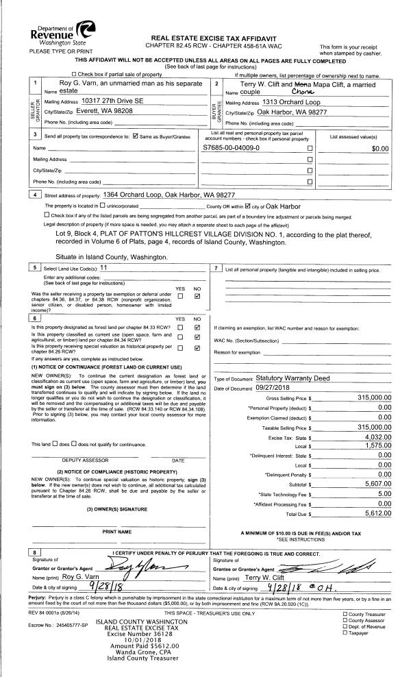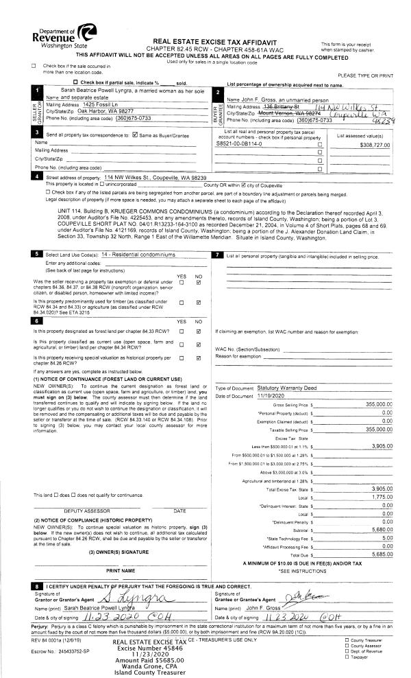| Mailing Address: | PAMELA A KINNAIRD 222 MAPLE ST CAMANO ISLAND, WA 98282 | % Ownership: | 100.0000000000% |