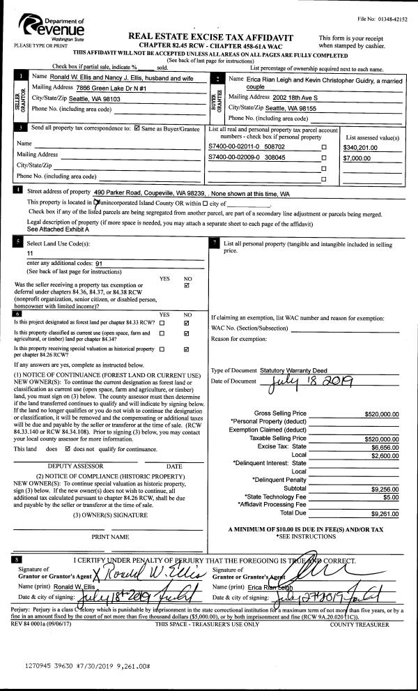 | Mailing Address: | LEWIS BEACH JANET BEACH 221 TARRAGON AVE CAMANO ISLAND, WA 98282 | % Ownership: | 100.0000000000% |