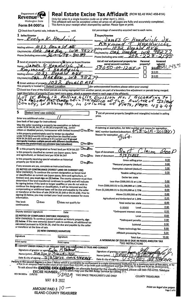 | Mailing Address: | SUSAN LYNN SLOAN 887 SW 3RD AVE OAK HARBOR, WA 98277 | % Ownership: | 100.0000000000% |
