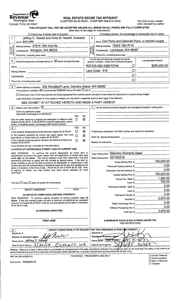 | 2 | 03/22/2018 | TTAXD | Treasurer's Tax Deed | ISLAND COUNTY TAX TITLE | ISLAND COUNTY TAX TITLE | | | $0.00 | 33370 | 4441229 |