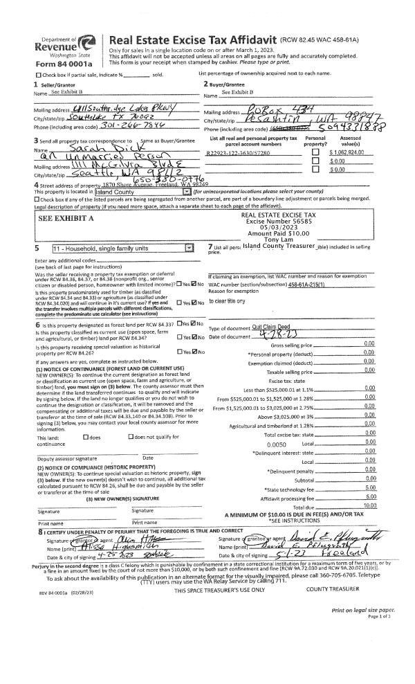 | Mailing Address: | JEREMIAH OROPEZA 4693 KINZIE RD OAK HARBOR, WA 98277 | % Ownership: | 100.0000000000% |