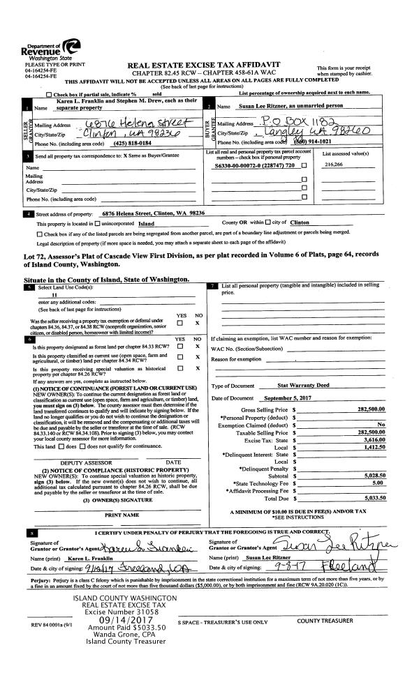 | Mailing Address: | 1043 SCENIC AVE CAMANO ISLAND, WA 98282 | % Ownership: | 100.0000000000% |