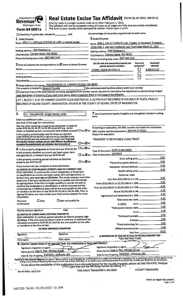 | Mailing Address: | 779 MAPLE GROVE RD CAMANO ISLAND, WA 98282 | % Ownership: | 100.0000000000% |