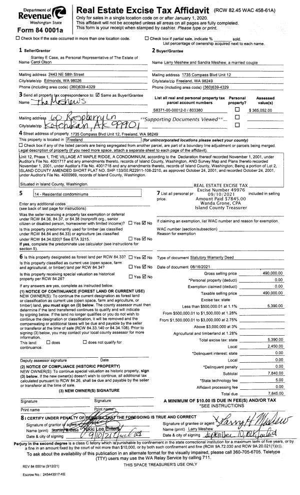 | 11 | 08/27/2004 | PRD | Personal Representatives Deed | KRIEG, ESTHER A | RONHAAR, SHIRLEY M | | | $0.00 | 44011 | 4111295 |