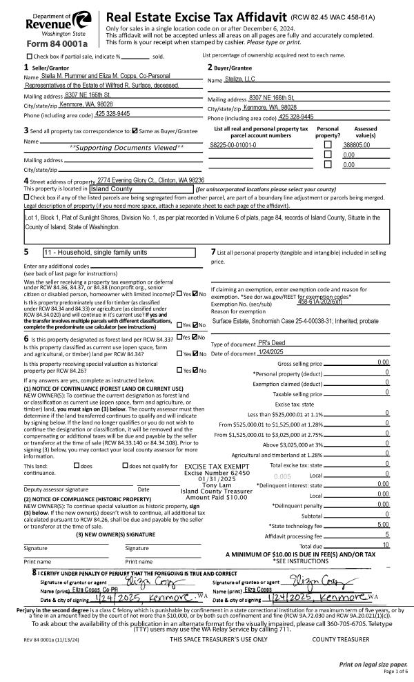| Mailing Address: | 613 RACE RD COUPEVILLE, WA 98239 | % Ownership: | 100.0000000000% |