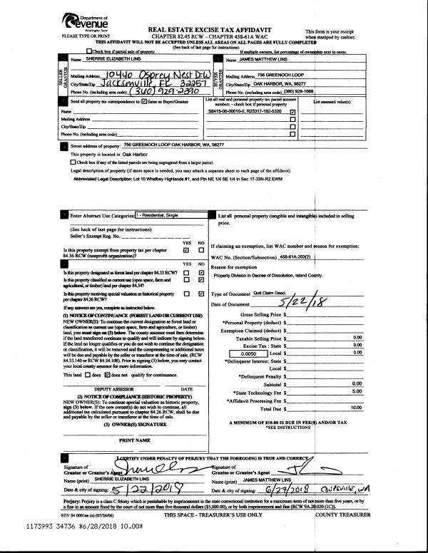 | 1 | 08/06/2018 | WD | Warranty Deed | HADDON, JAMES C | TOWNSEND, TERRY T | | | $626,000.00 | 35408 | 4449728 |