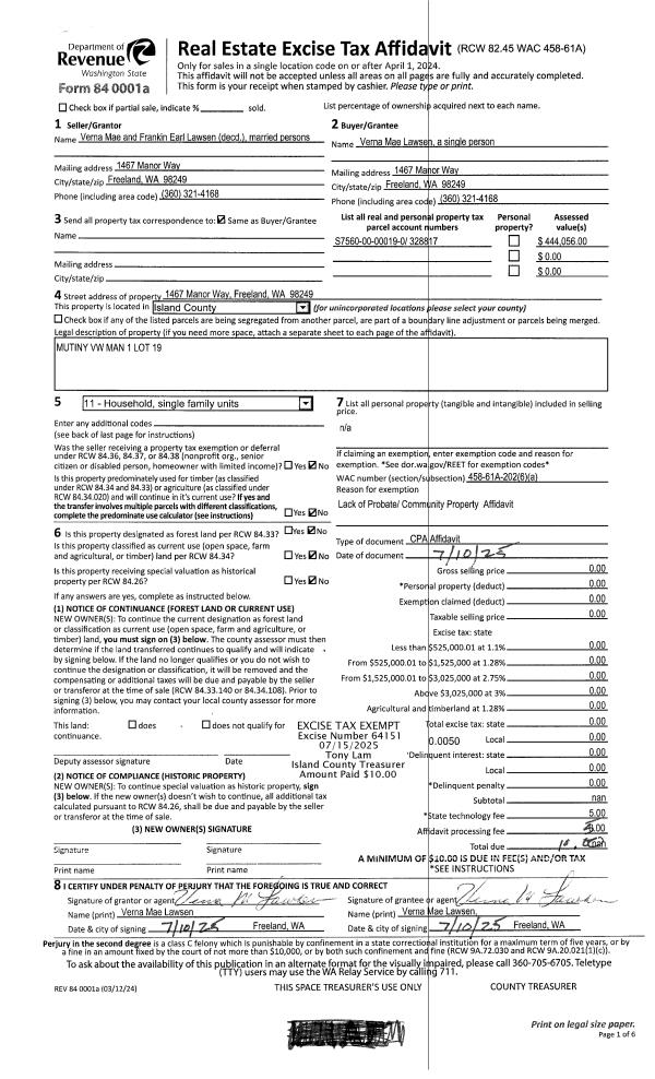 | Mailing Address: | 202 FORT CASEY RD COUPEVILLE, WA 98239-9743 | % Ownership: | 100.0000000000% |