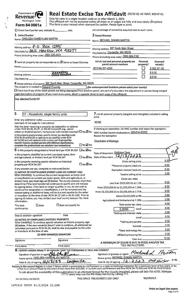 | 6 | 08/01/1988 | QCD | Quit Claim Deed | VAN, DE K | VAN, DE K | | | $0.00 | 82500 | 88009423 |