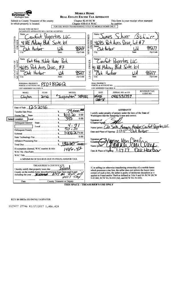 | Mailing Address: | SHELLEY R FARMER 2190 COVE DR OAK HARBOR, WA 98277 | % Ownership: | 100.0000000000% |