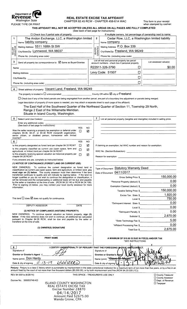 | Mailing Address: | 836 WOLVERINE PLACE CAMANO ISLAND, WA 98282 | % Ownership: | 100.0000000000% |