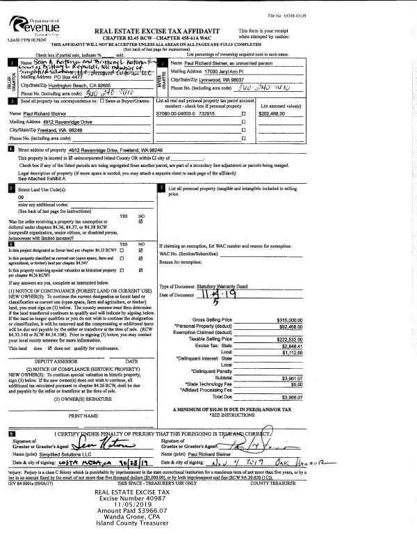 | 3 | 11/07/2018 | WD | Warranty Deed | SWAIN, SCOTT T | KOEHLER, BRYAN | | | $675,000.00 | 36620 | 4454846 |