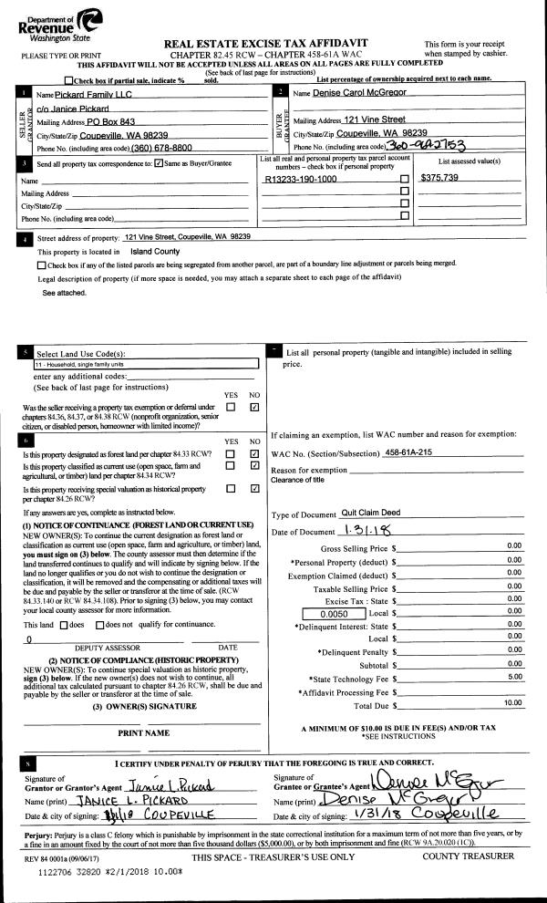 | Mailing Address: | KATHERINE HELEN BUTLER 1641 NE 7TH CT OAK HARBOR, WA 98277 | % Ownership: | 100.0000000000% |