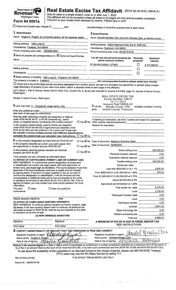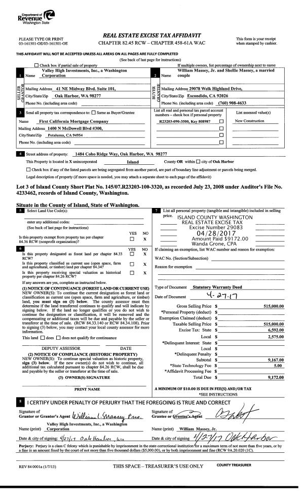 | Mailing Address: | 636 NW O'LEARY STREET OAK HARBOR, WA 98277 | % Ownership: | 100.0000000000% |