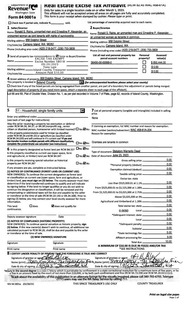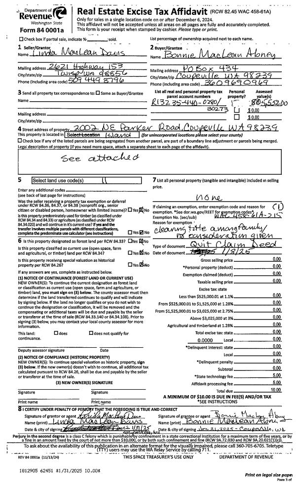 | Mailing Address: | MARIA A REYES-PINA 423 CORNET BAY RD OAK HARBOR, WA 98277 | % Ownership: | 100.0000000000% |