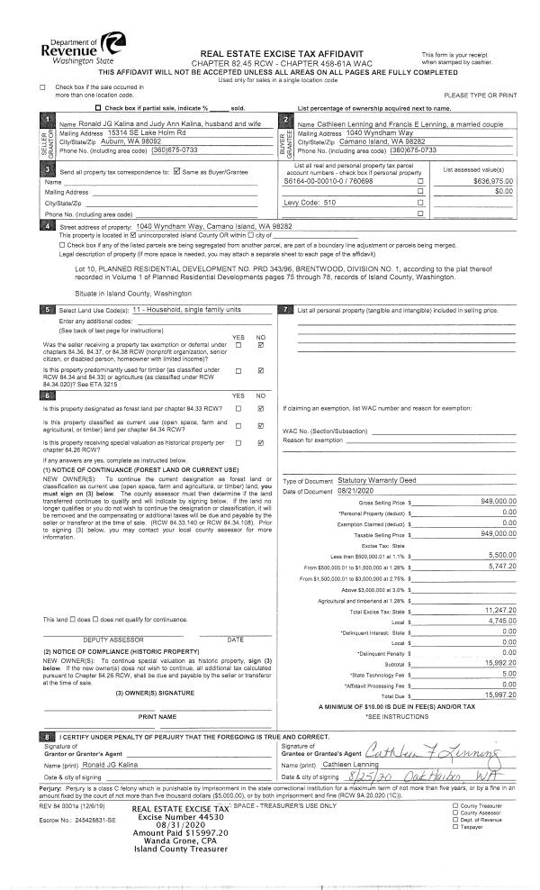 | Mailing Address: | C/O AGGIE E WILEY 6512 EBB TIDE LN FREELAND, WA 98249-9481 | % Ownership: | 100.0000000000% |