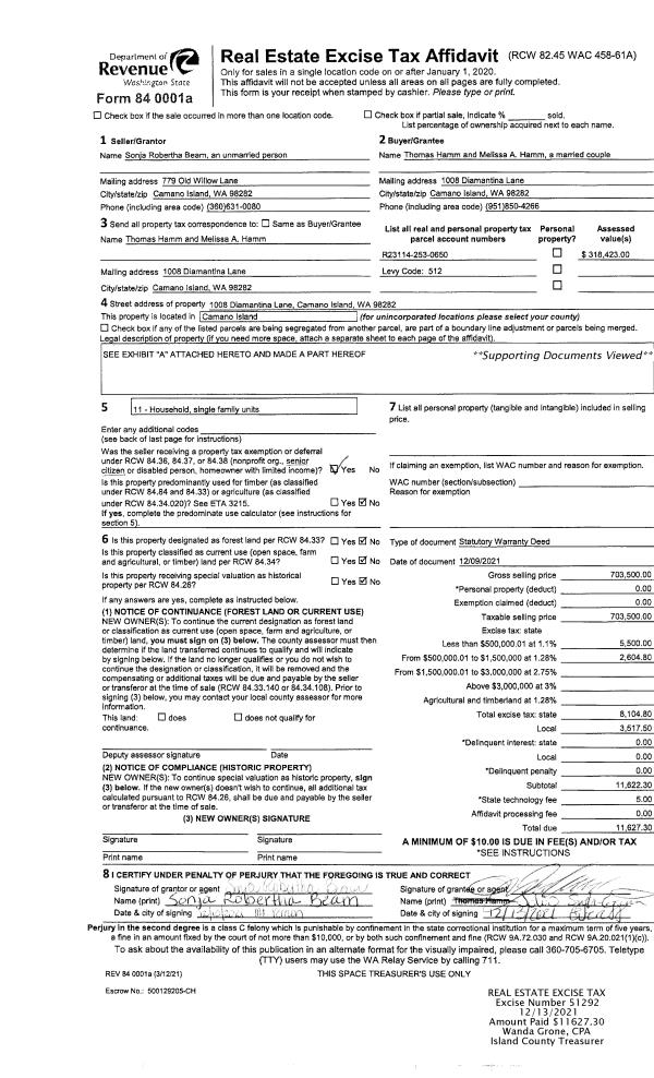 | Mailing Address: | HWASHING HEYWORTH 5482 BEACH BLUFF DR FREELAND, WA 98249 | % Ownership: | 100.0000000000% |