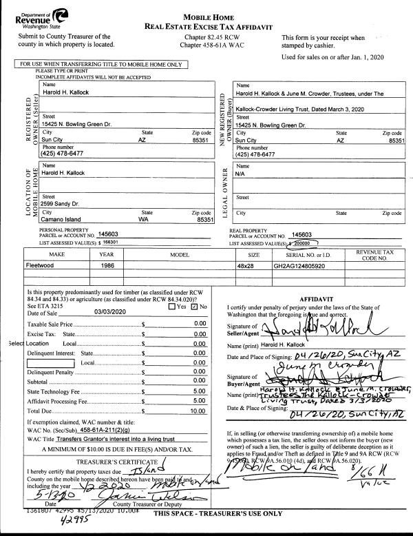 | Mailing Address: | 5938 SUNDOWN LN FREELAND, WA 98249 | % Ownership: | 100.0000000000% |